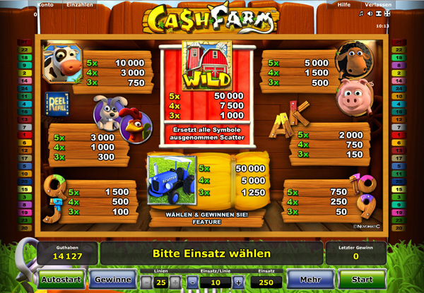 Ganz neu könnt Ihr seit heute, den 19. Januar 2025, den Cash Farm Spielautomat von Novomatic im Online Casino für Novoline Spiele namens Stargames spielen. Mit Farmville behandelt eines der beliebtesten Browserspiele je ebenfalls das Thema Bauernhof, hier können Euch die lustigen Tiere oder der Traktor aber richtig dicke Gewinne bringen. Das geht natürlich nur bei Cash Farm von Novomatic und jetzt ebenfalls ganz einfach im Browser.