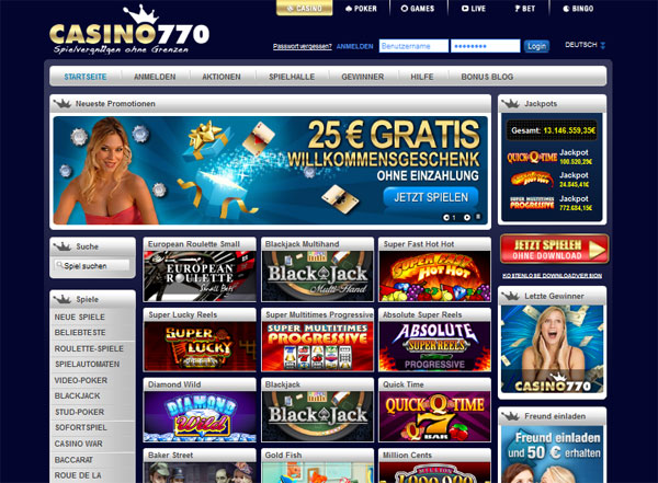 Wir waren von dem riesigen Angebot im Casino 770 sehr angetan und würden dieses zu einem der besten im Internet überhaupt erklären. Auch die Aktionen wechseln sich ständig und die Preise haben uns überzeugt. Ein tolles Casino mit vielen Möglichkeiten.